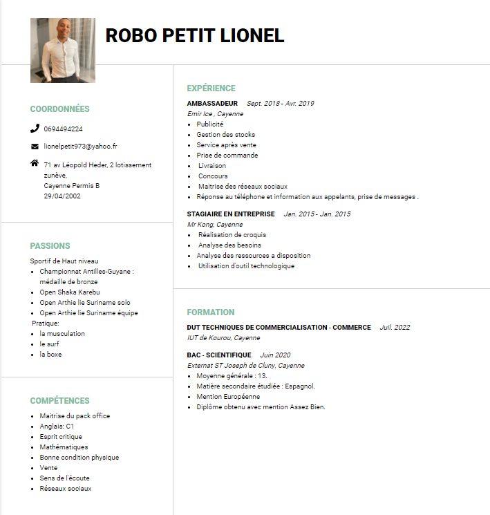 71 av Léopold Heder, 2 lotissement zunève 97300 Cayenne